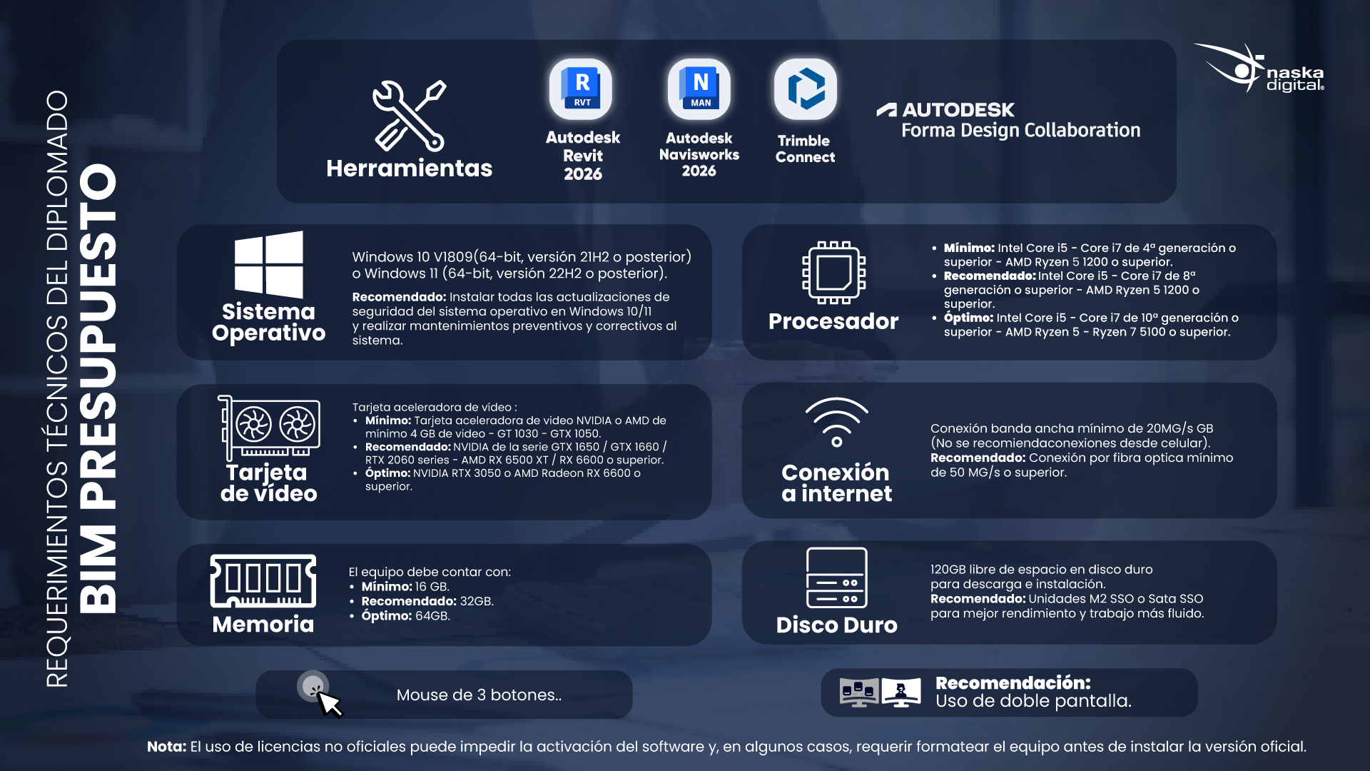 Requisitos BIM Presupuestos:  Entender de Planos y manejo básico de algún software como Autocad.